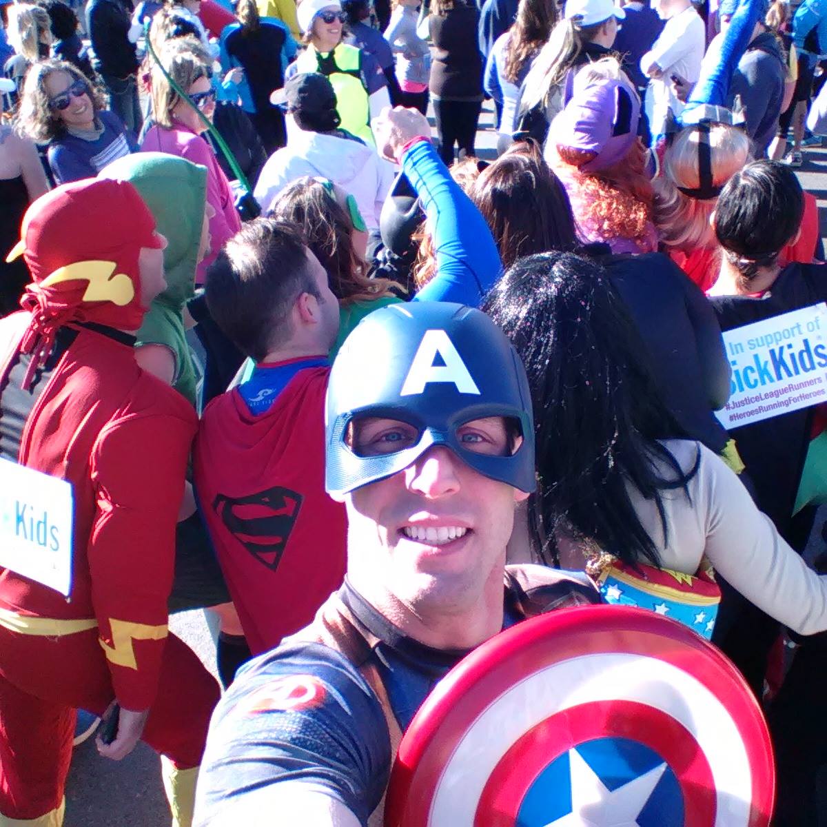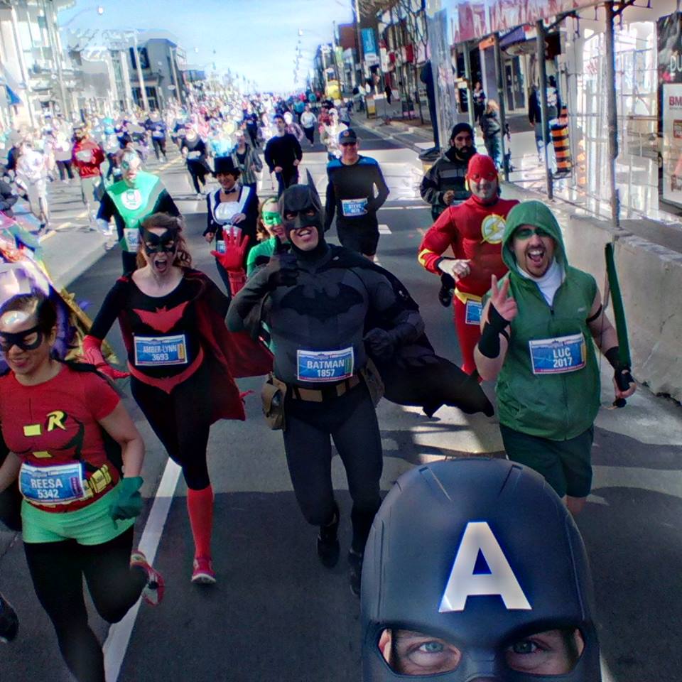 Though my experience with being a Digital Champion for this race I had the great pleasure of meeting a whole bunch of runners I had never known about before.  One of those people was JP Hernandez.  It didn’t take long for me to realize the true super hero powers of JP.  He truly inspired me with his charisma, humility and down to earth welcome everyone with open arms personality.  In 2013 JP ran the Scotia Toronto Waterfront Marathon as Batman and raised money for SickKids hospital.  In just 2 short years JP’s marathon run as Batman has evolved in something AMAZING!  The Justice League Runners. It didn’t take me long to decide that this was something I wanted to be a part of!  I contacted JP asking him if I could participate and he quite enthusiastically welcomed me into his League!  SickKids already holds a special place in my heart for me and my family so I was quite excited to be a part of a team raising money for Sick Kids Foundation.  If you would like to read more about JP’s journey to the creation of the Justice League Runners I really recommend you click here.