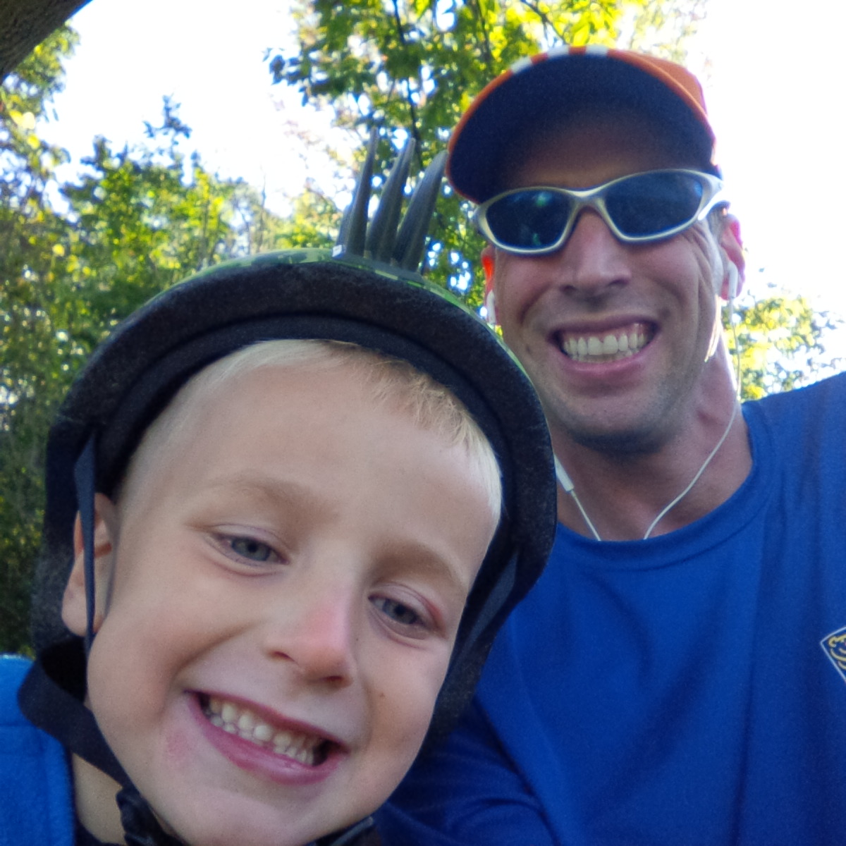 We headed off to the paved trail to begin our run! We weren’t sure how the routes were going to be laid out but were quite happy to find out it was one route with turn around points for 2k, 5k, & 10k. We have never done anything like this with the kids before so the plan was to make it to each turn around, see how they were doing, and gauge from there. I’m not going to lie it was not without complaining from the kids along the way as well as a couple of spills!. However I am super proud of the kids for completing the whole 5k route! While we were not able to continuously run the whole route and I spent some of it helping the little guy steer, it still felt amazing to get out as a family being physically active!.